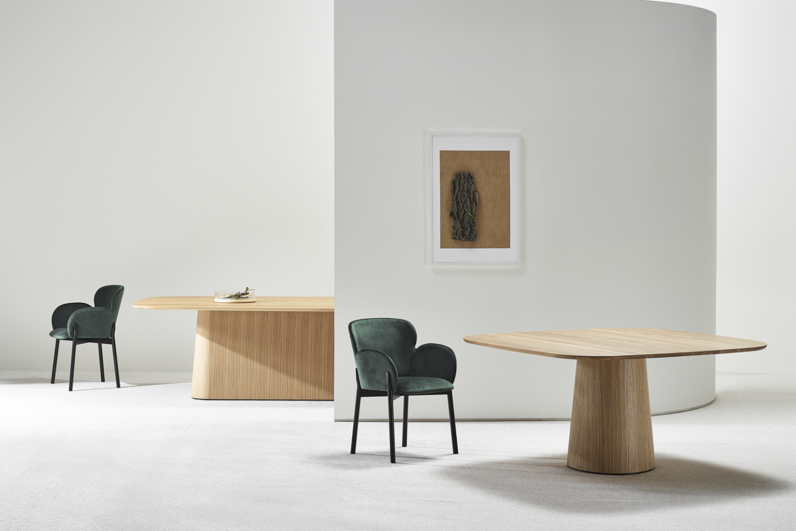 The collection includes conference, dining and bar heights, three types of bases and six tabletop shapes. These combinations create dozens of variants naturally suited to offices, homes, restaurants and relaxation areas. The set can be complemented with a stackable stool and practical trolley.