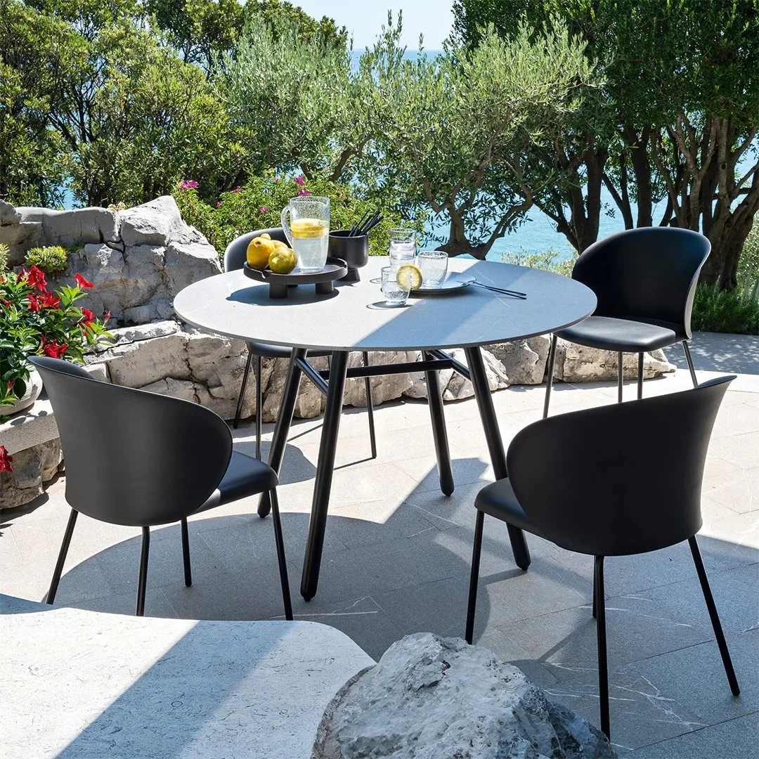 YO! is a contemporary and colourful round or rectangular table with cylindrical legs in solid Beech wood and tops in matching veneered wood with a sloping edge.