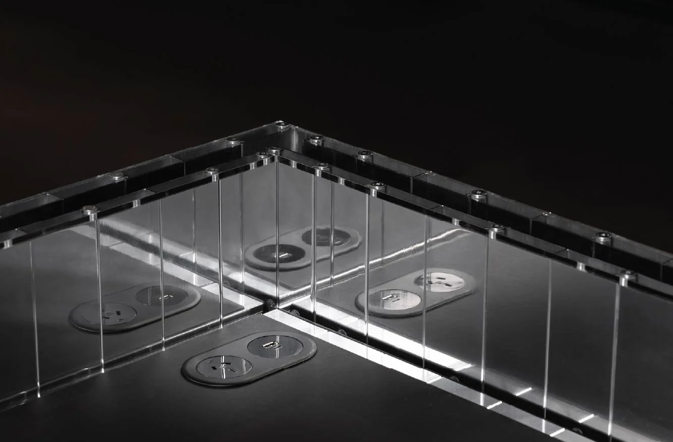 The Aspect team reached out and mentioned they had been developing something interesting—so we were instantly intrigued. Some initial prototypes of the extrusion system with its unique dimensions and connection capability were laid out in front of us, and while Aspect had designed the system for the column table product line, we suggested we could think bigger and bolder.
