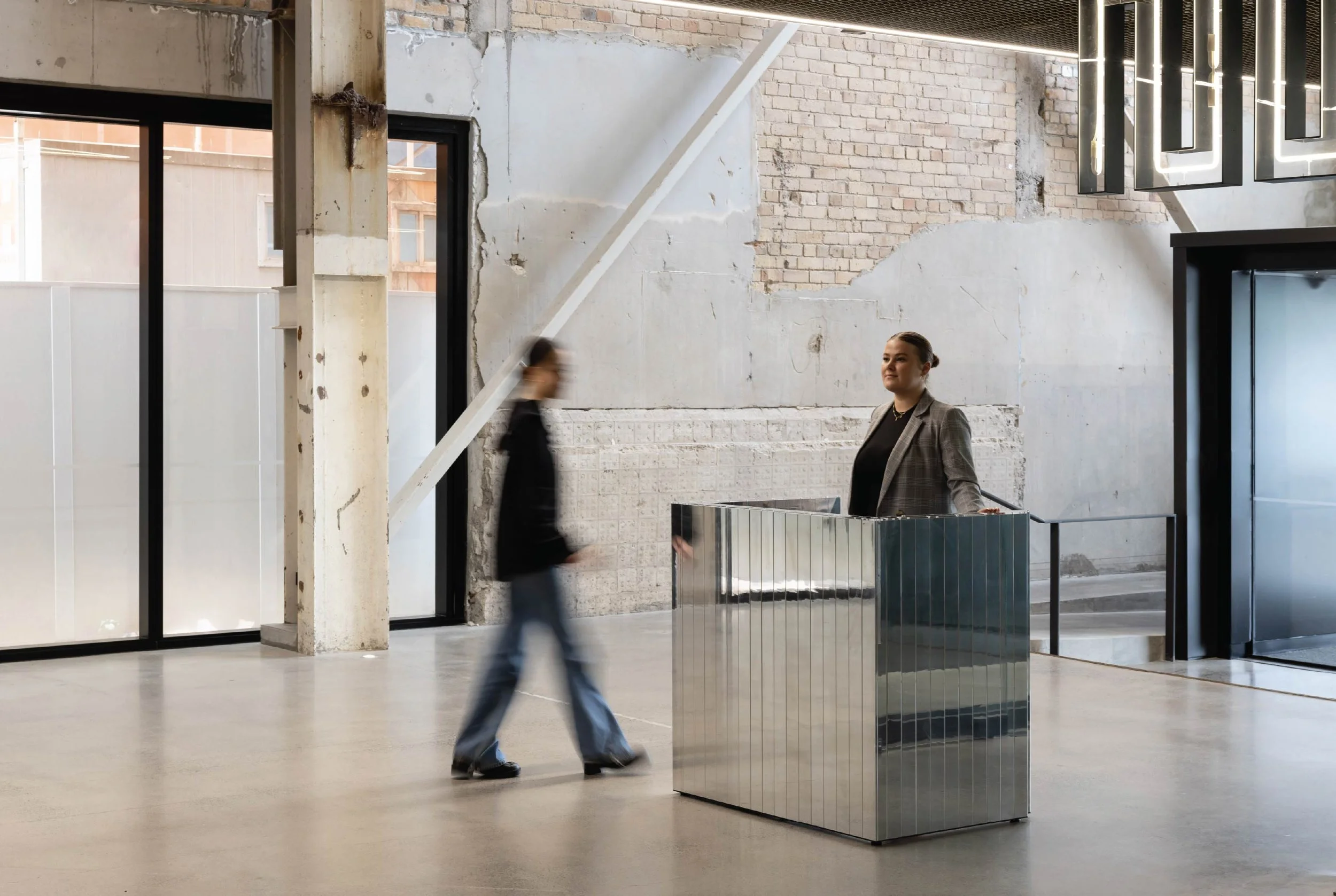 With its innovative method of interlocking aluminium profiles, Atlas introduces a refined modularity that immediately captured the imagination of Warren and Mahoney interior designer Daniel Kempka. Leveraging the system’s structural versatility, Daniel and the Warren and Mahoney team took a material-driven approach to designing a bespoke reception desk for the foyer of their Auckland studio.