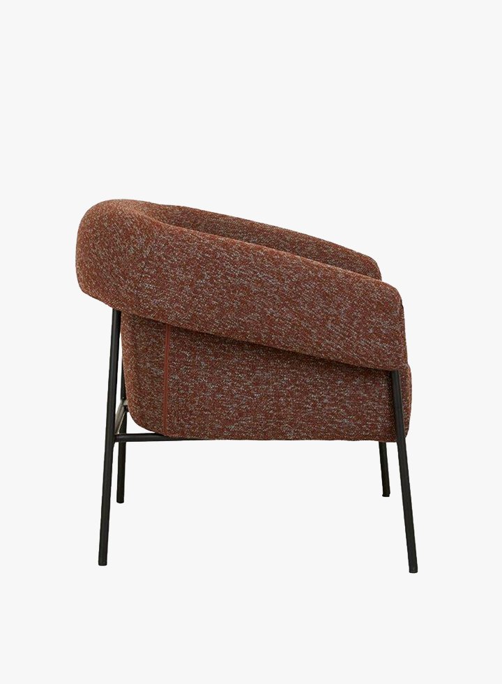 Upholstered in a medium foam profile cushion for everyday comfort, Sid is available in four colourways, Russet, Olive, Midnight Tweed, and Nougat — offering a versatile palette to complement any interior style. Well suited to commercial lounge areas, breakout spaces, and reception environments.