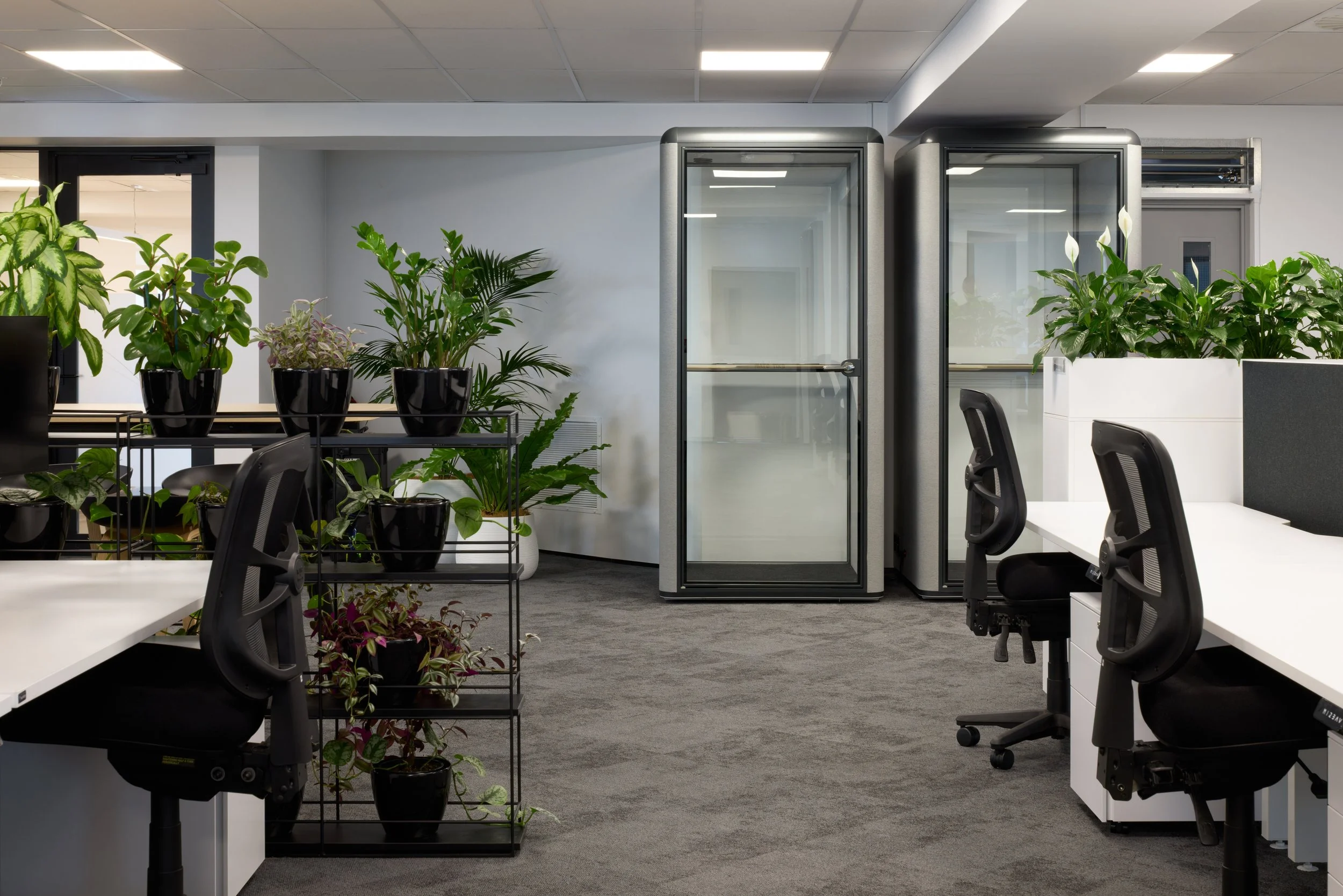 The furniture supports an environment aligned with Gallagher Insurance’s collaborative culture. Throughout the office, ergonomic task seating supports daily productivity and wellbeing. Muse phone booths offer acoustic privacy for confidential client discussions and concentrated work within the open-plan environment. Sector 2 tables anchor meeting rooms and provide leaner surfaces for the collaboration and team building central to the company’s values. Agility pedestal tables create flexible meeting spaces that support the company’s agile, problem-solving approach, while storage solutions with integrated planter walls bring natural elements throughout the workspace, creating a warm, professional atmosphere.